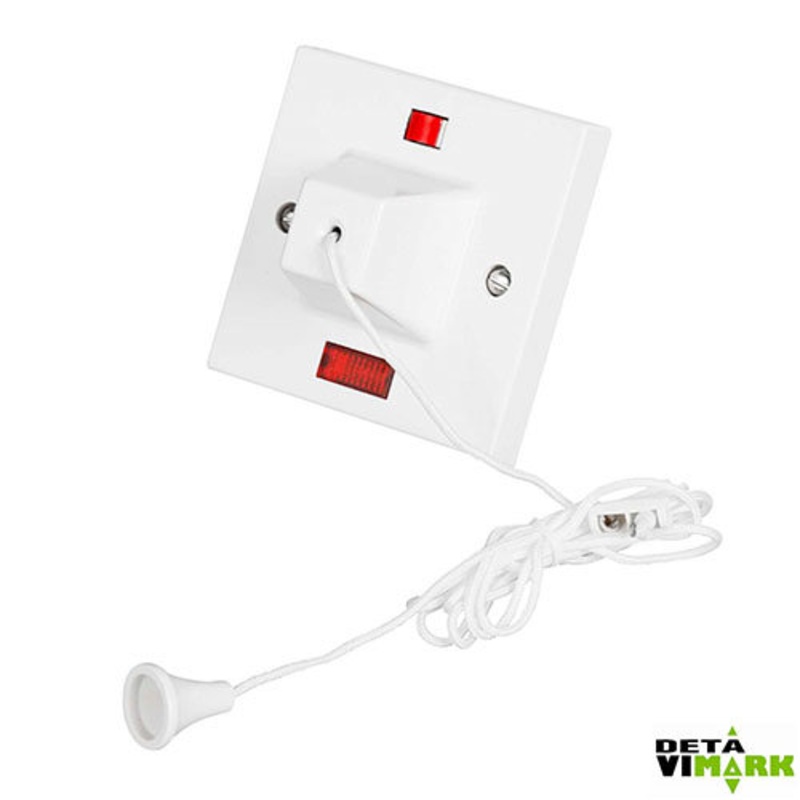 Vimark 45A DP Pull Cord Switch Neon Deta Vimark is a long established and widely acclaimed range of high quality white moulded wiring accessories.